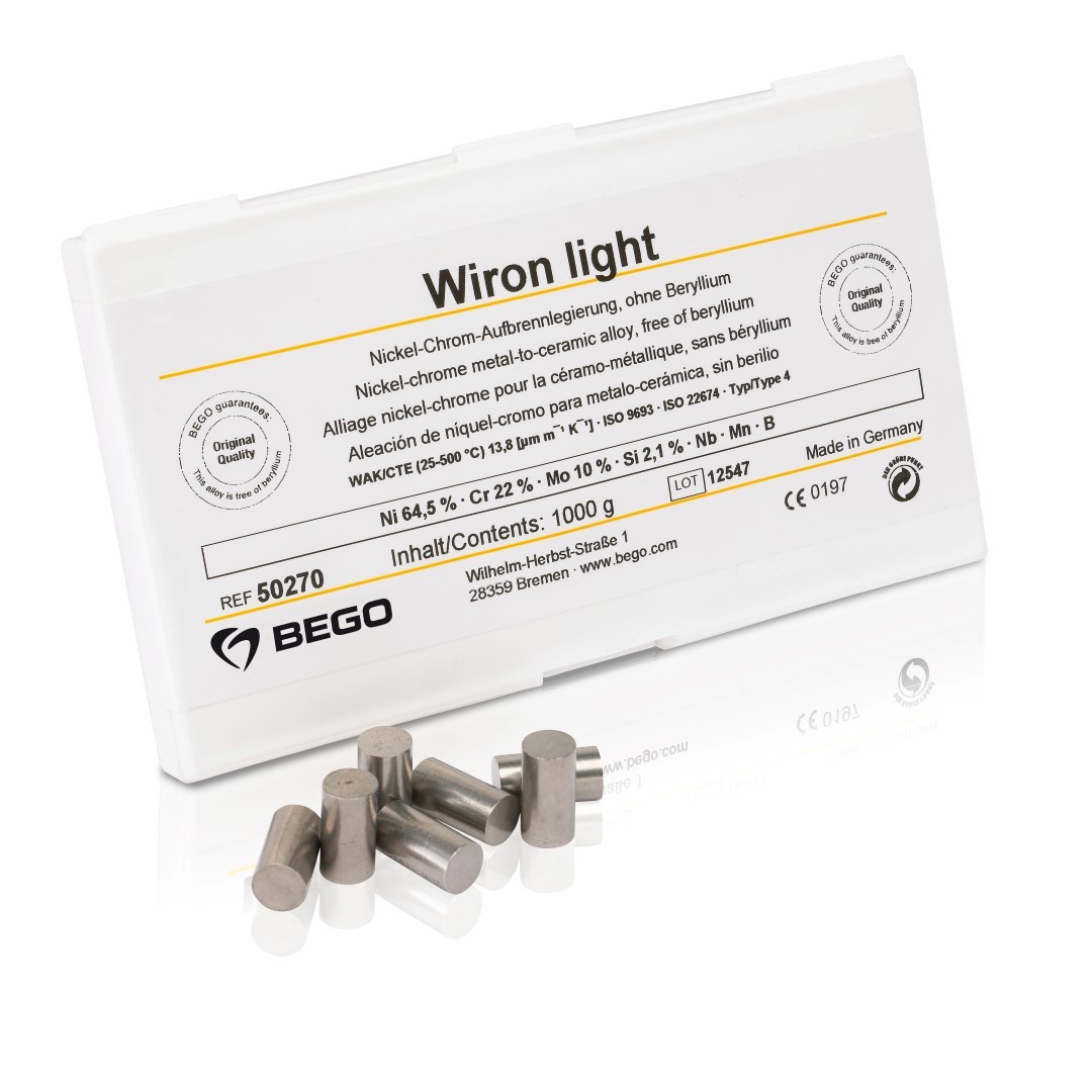 - Έρχεται να λύσει το πρόβλημα του ανεπιθύμητου γκριζαρίσματος της πορσελάνης, που οφείλεται στην αντανάκλαση του φωτός στα σκουρόχρωμα οξείδια των συμβατικών κραμάτων. Τα οξείδια του WIRON LIGHT είναι ανοιχτόχρωμα, έτσι εξασφαλίζεται πολύ καλύτερο χρώμα στην πορσελάνη.